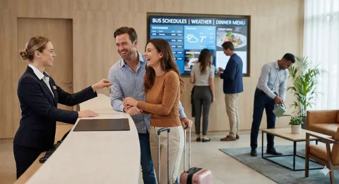 Häufig gestellte Fragen beantwortet die Anzeige von selbst. So hat Ihr Personal mehr Zeit für die wirklich persönlichen Momente der Gastfreundschaft.